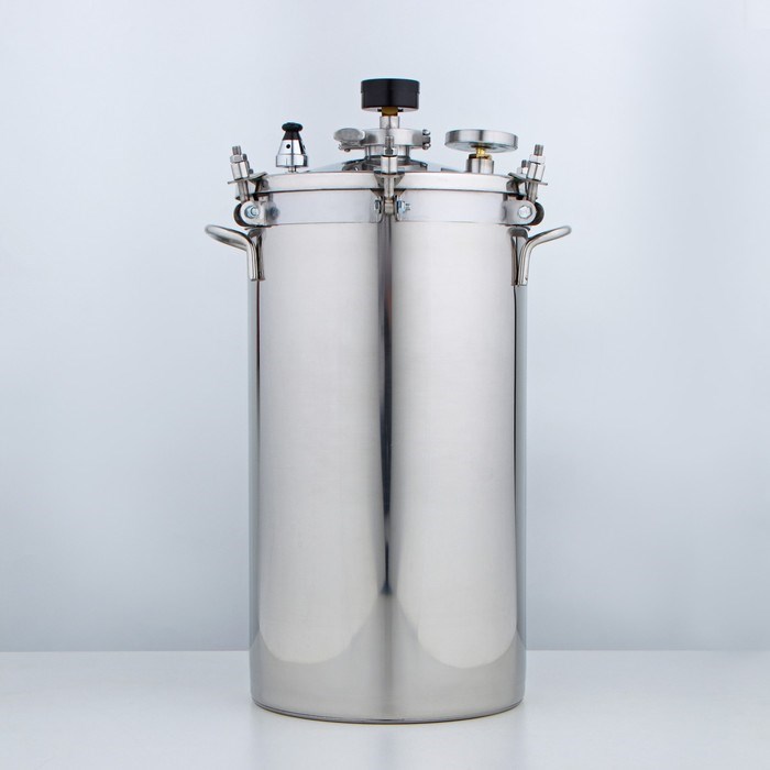 Возможность использования для дистилляции: да Гарантия: 12 месяцев Диапазон температур,°С: 102-112 Использование банок 0,5 л.: да, 12 шт Использование банок 0,7 л.: да, 8 шт Использование банок 1 л.: да, 6 шт Использование банок 2 л.: да, 1 шт Использование банок 3 л.: да, 1 шт Кассета для размещения банок: да, 3 уровня Комплектация: термометр, манометр, клапан избыточного давления, кассеты для размещения банок Контроль давления: манометр биметалический Контроль температуры: термометр биметалический Марка стали: AISI 304 Материал: пищевая нержавеющая сталь Объем, л: 20 Охладитель (дефлегматор): да, проточный Производитель: УЗБИ, Челябинск Режим: на воде Сертификат: да Сухопарник: да Тип: автоклав-стерилизатор Цвет: нержавеющая сталь Вес, гр: 7500 Длина, (мм): 285 Ширина, (мм): 285 Высота, (мм): 600Узел автоматического сброса избыточного давления: да