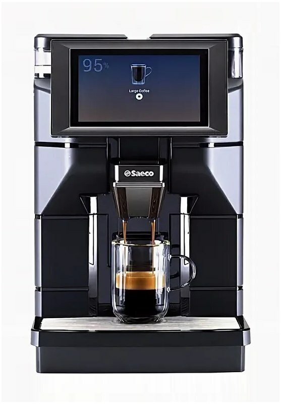 В новинке Saeco Magic B1 - профессиональная кофемашина с высокой производительностью. Современный, высокотехнологичный дизайн, отличные характеристики, профессиональные компоненты. Готовит кофейные напитки высокого качества с отличным вкусом. Кофейный аппарат оснащается расширенной емкостью от 8,5 до 15 г. Автомат зарекомендовал в сегменте Ho.Re.Ca., предназначен для использования в офисах, кофейнях, барах, ресторанах, отелях. Кофемашина рассчитана на ежедневную эксплуатацию с нагрузкой до 150 порций.Увеличенные объемы контейнера для зёрен - 600 г и резервуара для воды - 2,5 л. Оснащается передовой электроникой. Совместимость с протоколом MDB для платежный систем. Бесшумный встроенный капучинатор с запатентованной системой очистки. Комбинированный дозатор кофе, молока и воды. Удобная и понятная панель управления, большой цветной графический дисплей. Сенсорные кнопки с подсветкой, фото-иконки с изображением напитков. Персонализация напитков. Автоматическое регулирование количества дозируемого кофе. Дозирование молока. Приготовление двух порций черного кофе одновременно. Настройка по параметрам: выбор объема напитка, настройка крепости, регулировка помола. Большие бункеры для кофейных зерен, воды, кофейного жмыха. Одинарный контур гидравлической системы. Общие характеристики Бренд Saeco Страна производителя Италия Вид отдельно стоящая Тип кофемашины зерновая Тип используемого кофе зерновой Дизайн черный Размер (ВхШхГ) 43,5 x 28 x 48,1 см Давление помпы, Бар 15 Серия Saeco Magic Цвет черный Приготовление кофе Предустановленные рецепты 7 Приготовление эспрессо Да Одновременное приготовление двух чашек эспрессо Да Приготовление капучино? Нет Американо Да Латте Да Приготовление ристретто Да Горячая вода Да Регулируемое количество кофе Да Приготовление эспрессо двойной крепости Да Персональные рецепты приготовления есть Управление вкусом и ароматом Функция предварительного заваривания? есть Регулировка степени помола 8 степеней Регулировка крепости кофе есть Регулировка размера порции есть Индивидуальная регулировка температуры горячей воды да Автоматическая регулировка количества молотого кофе есть Идеальное давлениe для оптимального аромата автоматически Фильтр для воды есть Гигиена прибора Автоматическая программа удаления накипи и очистки системы есть Контроль заполнения дренажного поддона для воды и отсека для отработанного кофе да Автоматическоое ополаскивание системы при выключении, включении есть Съемный отсек для кофейной гущи 30 порций Дренажный поддон с решеткой есть Съемный резервуар для воды 2.5 литра Функциии и технологии Графический дисплей на русском языке есть, ЖК 7.0 дюймов, цветной графический дисплей с сенсорным управлением Вывод руководства по эксплуатации на монитор есть Предупреждение "контейнер для воды почти пуст" есть Предупреждение "контейнер для зерен почти пуст" есть Регулируемая высота дозатора 7,5-16,0 см Отсек для кофейных зёрен (граммы)? 600 Подсветка кнопок, подсветка чашек есть Управление по Bluetooth нет Комплектация Контейнер для молока Нет Технические характеристики Мощность 1300 Вт Кофемолка с жерновами из высококачественной керамики SilentCeramDrive коническая мельница из нержавеющей стали Выбор языка для сообщений на дисплее есть, в т.ч русский язык Настройка автоотключения есть Производитель Saeco-Philips Г
