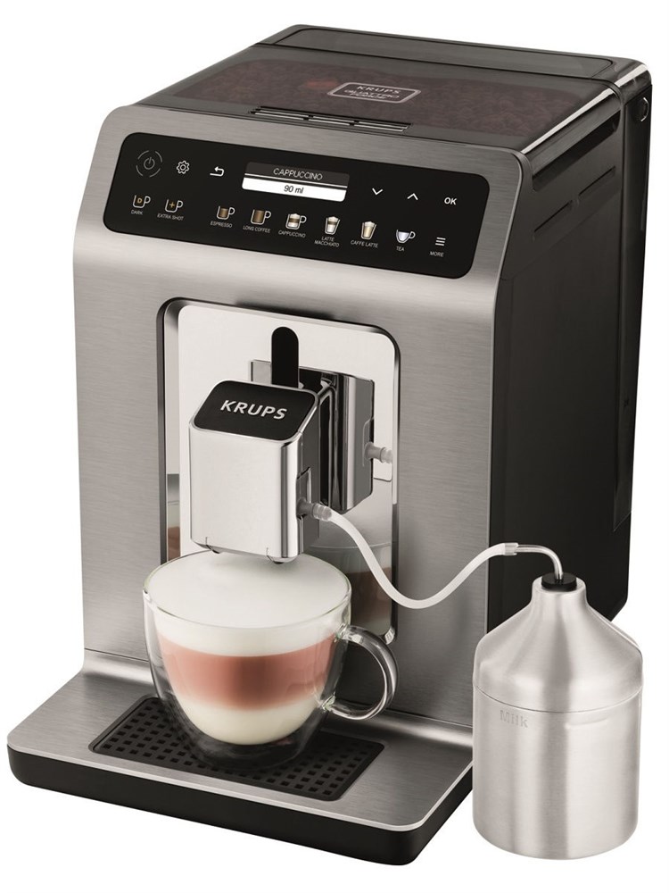 С автоматической кофемашиной KRUPS Evidence Plus вы одним касанием приготовите потрясающий ароматный кофе как настоящий бариста. Благодаря 19 предустановленным и регулируемым программам вы всегда будете получать идеальный напиток из только что смолотых зерен кофе, отвечающий вашему вкусу. Вы также можете выбрать 6 рецептов, которые можно будет запустить нажатием всего одной кнопки. Инновационная и интуитивная широкая цветная сенсорная панель с OLED-дисплеем поможет быстро и легко управлять кофемашиной. Коническая кофемолка из нержавеющей стали эффективно и на высокой скорости измельчает зерна до нужного помола. Уникальная технология KRUPS QUATTRO FORCE сделает привычный домашний кофе произведением искусства. Технические особенности Мощность устройства 1450 Вт Длина кабеля 100 см Объем емкости для воды 2.3 л Общие характеристики Гарантийный срок 1год Модель EA894T10 Управление Тип управления электронное Дополнительная информация Индикация кофемашины включение Приготовление кофе американо; капучино; эспрессо Тип кофемашины рожковая Доп. опции кофемашины автоматическое отключение; встроенная кофемолка; регулировка степени помола; съемный резервуар для воды Тип используемого кофе зерновой Фильтр съемный Глубина упаковки 41 см Высота упаковки 40 см Ширина упаковки 27 см Ширина предмета 24 см Глубина предмета 38 см Высота предмета 36.7 см Вес без упаковки (кг) 8.4 кг Вес с упаковкой (кг) 9.6 кг Давление помпы 15 бар Комплектация инструкция по применению; кофемашина Страна бренда Германия Страна производитель Кита