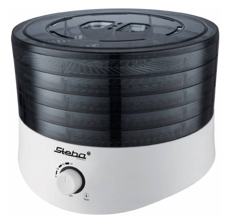 Стильный и производительный дегидратор, позволяющий с минимальными усилиями со стороны пользователя приготовить даже большое количество сушки. В отличии от естественного высыхания на открытом воздухе, машинное обезвоживание способно ускорить приготовление в десятки раз! При этом сушеные продукты не припадут пылью и не успеют впитать в себя посторонние запахи. Сушилка фруктов Steba ED 4 оснащена 5 съемными лотками, изготовленными из высококачественного пищевого пластика, в котором отсутствует бисфенол-А (BPA). Мощность сушильного аппарата достигает 280 Вт — этого вполне достаточно для того, чтобы быстро и безопасно обезводить любую продуктовую нарезку или зелень. Диапазон нагрева регулируется пользователем в пределах 40-70 °C. Механическая панель управления состоит из поворотного регулятора. Обдув производится в вертикальном направлении, снизу вверх. Данный дегидратор дает возможность готовить: сухофрукты, суповые наборы, травы для заваривания чая, ароматические смеси. Также аппарат превосходно подходит для приготовления тарани и вяленого мяса, чернослива, кураги, изюма, фиников и пр. Кол-во лотков 5 шт Размер лотка ?240 мм Потребляемая мощность 280 ВтДиапазон температур 40 – 70 °C Расположение вентилятора (нагревателя) снизу Управление механическое Материал лотков пластик Габариты 180x255x270 ммВес 1.5 к